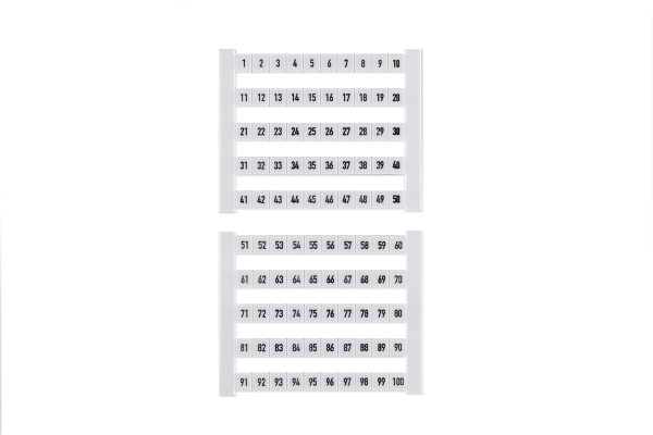 Labels geschikt voor Weidmüller klemmen. 50 nummers per kaart, keuze uit 1-50 of 51-100.